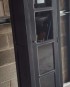 Meuble colonne étroite en bois exotique entièrement repeint intérieur et extérieur en noir lui donnant un style industriel.